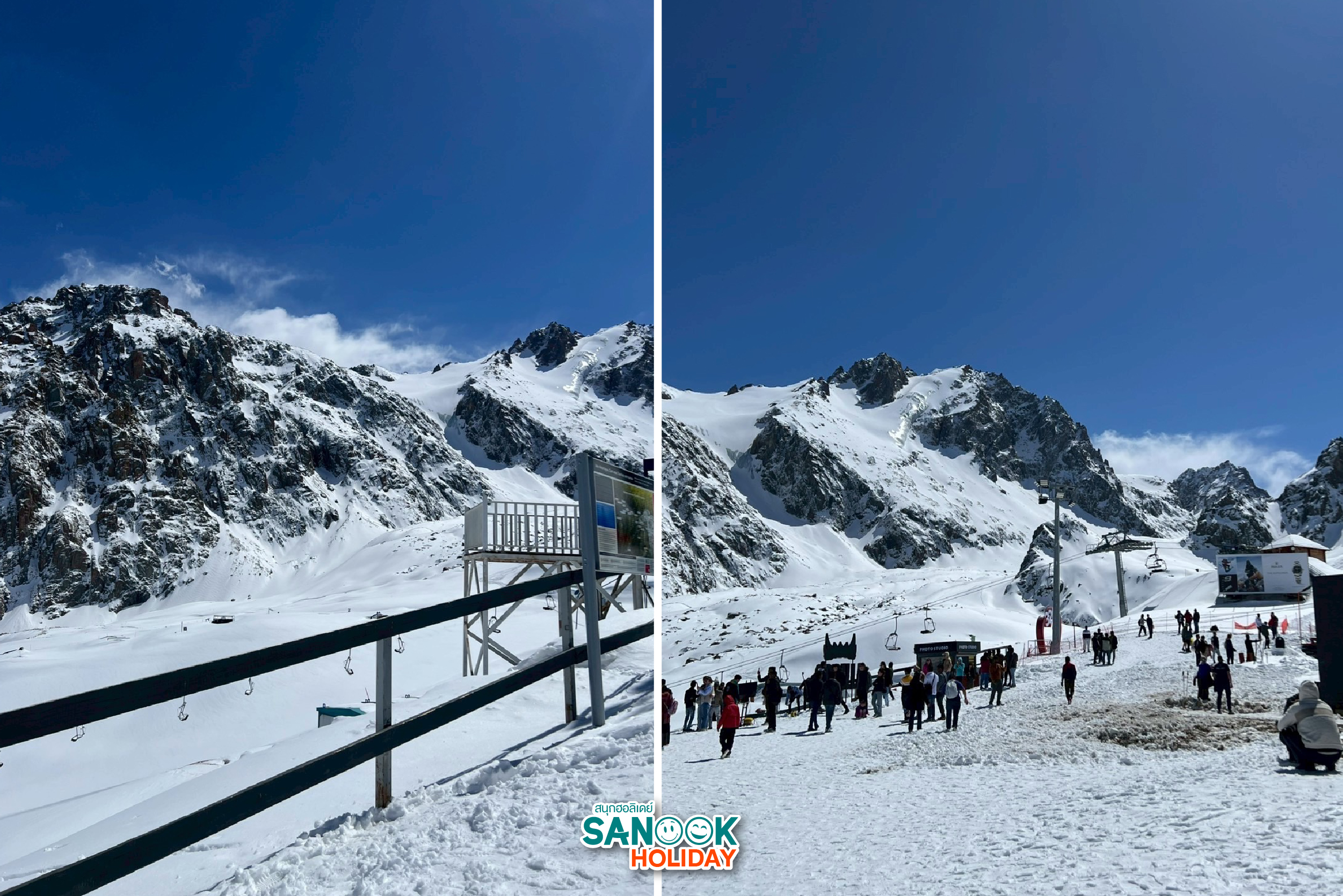 Sanook Tips: แม้คุณจะเล่นสกีไม่เป็น ก็สามารถนั่งกระเช้าขึ้นไปถึงสถานีสูงสุดเพื่อจิบช็อกโกแลตร้อนชมวิวภูเขาได้ครับ บรรยากาศด้านบนนั้นสวยระดับโลกจริงๆ